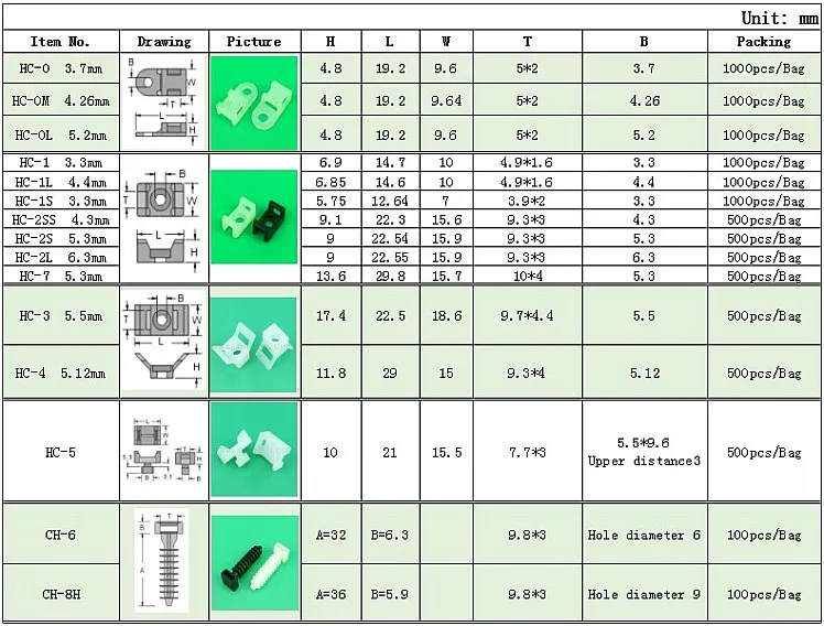 | Color: | black,white, other color can be customized; | Keywords: | OUORO CH-8H Plastic Nylon Wall Plug Mount Wire Cable Tie Holders; |