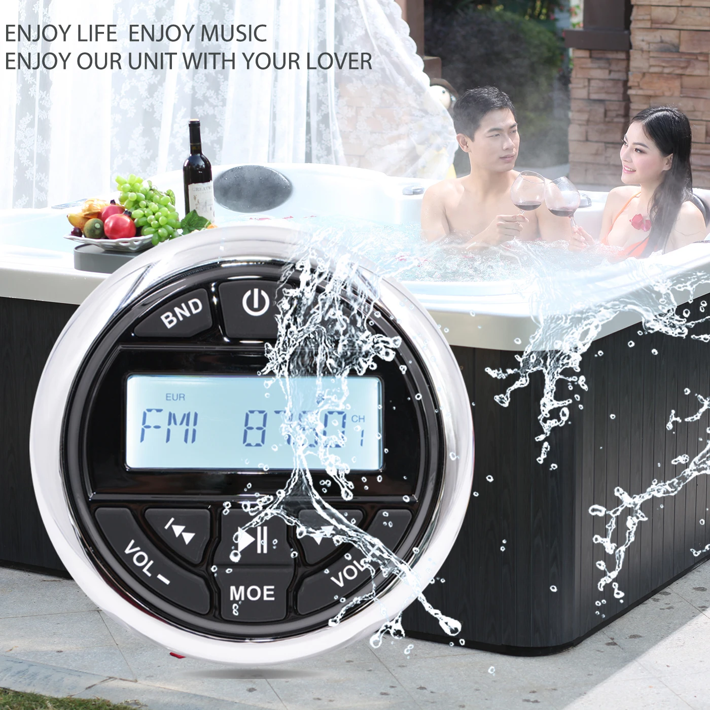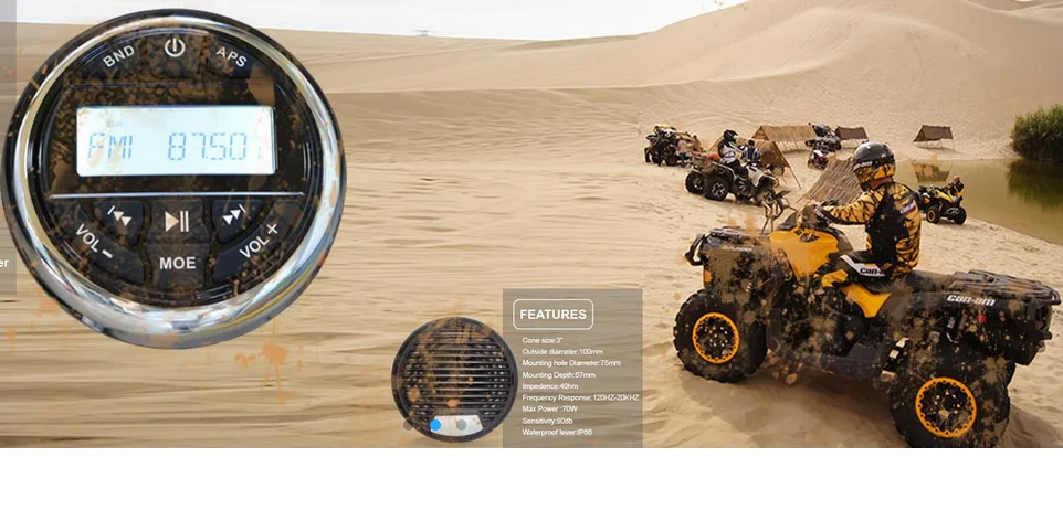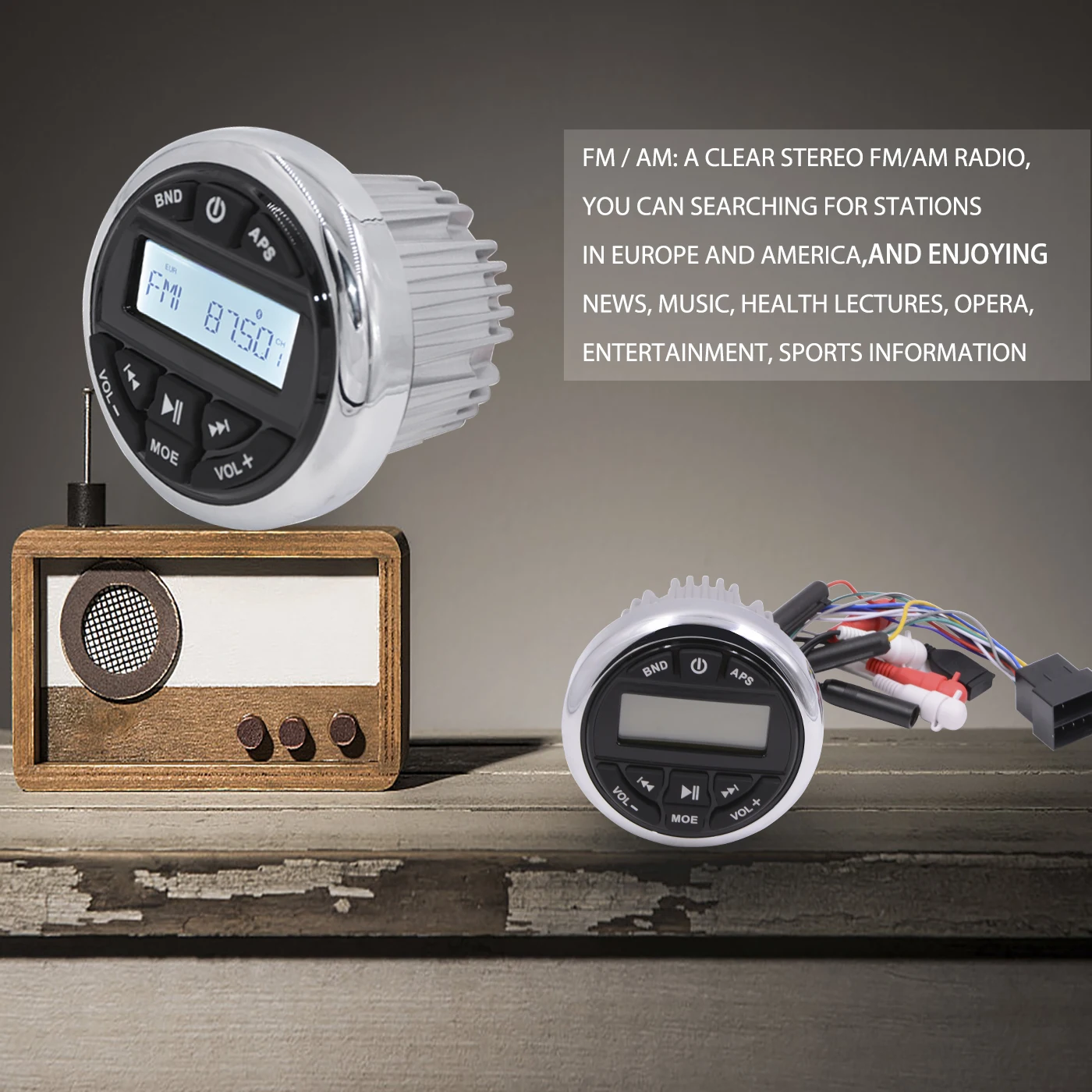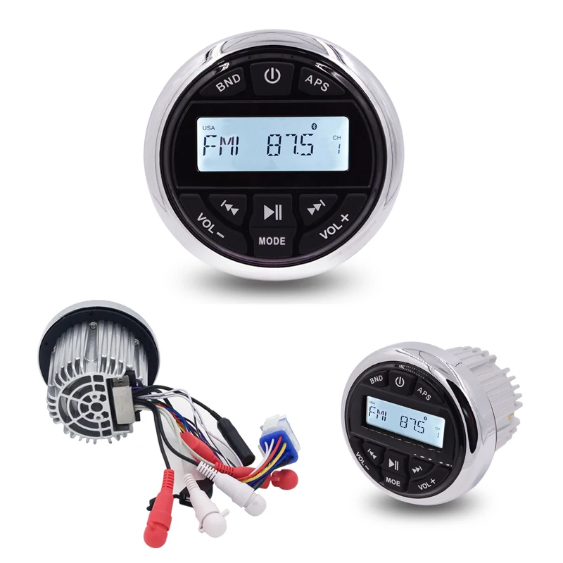 This tiny waterproof stereo is great for applications where limited space is available. Even though it is only gauge size, it can still power up to 4 speakers with 40 watts (peak power) per channel.
