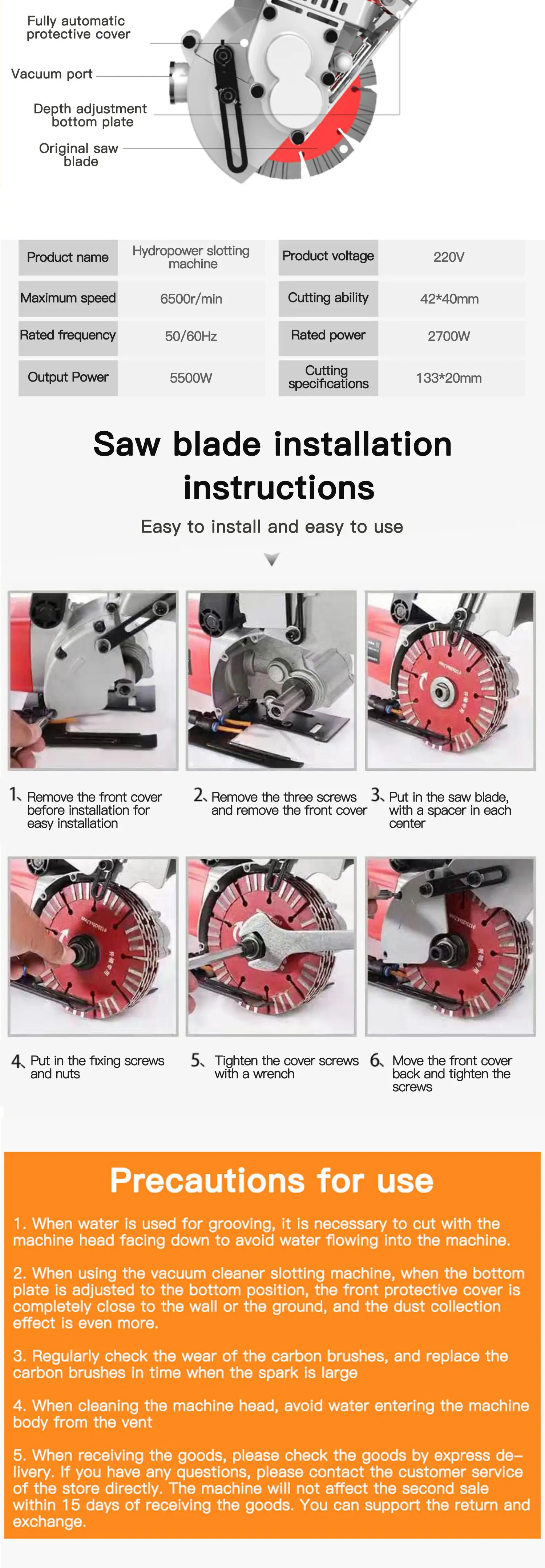 | Cutting ability: | width42mm *depth40mm; | rated power: | 3300 W; |