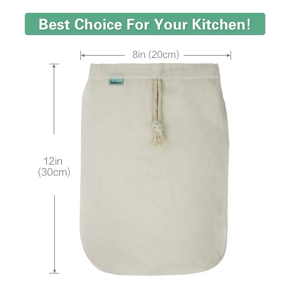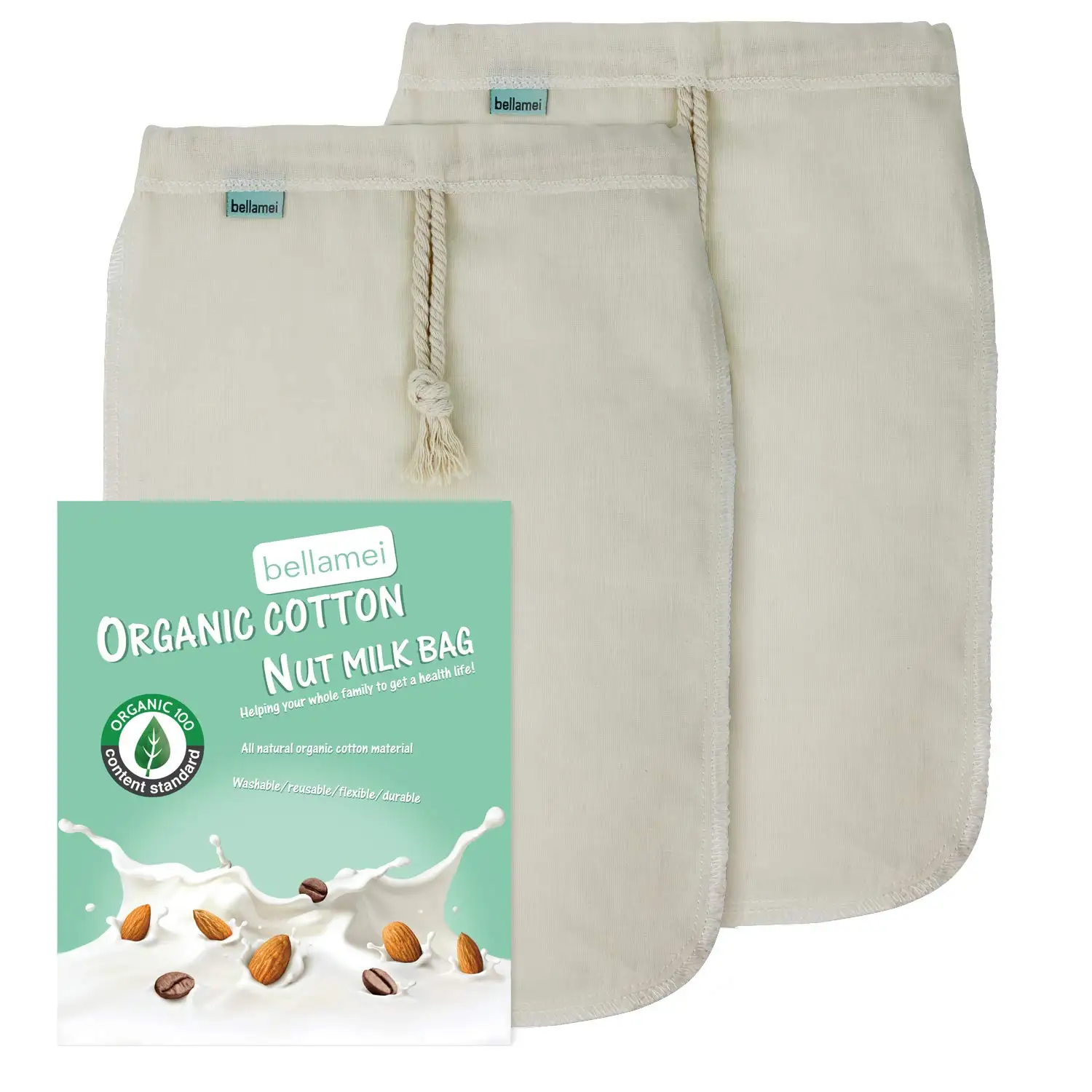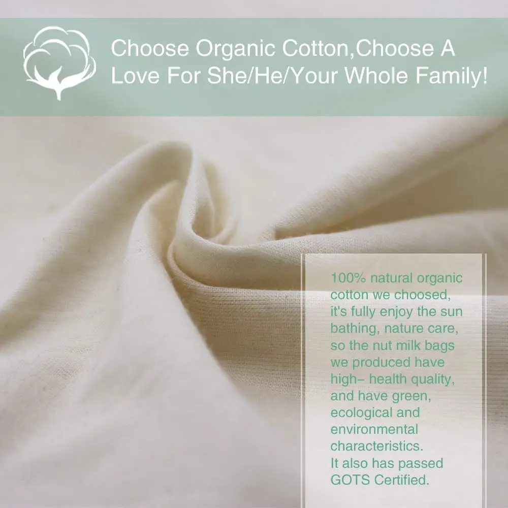 Nut Milk Bag Reusable Certified Organic Cotton Nut Bags for Almond Milk Juice Cold Brew Coffee Tea Yogurt Cheese Bone Broth