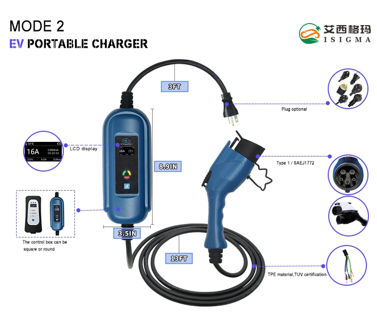 SAE J1772 or Type 1 Adjustable EV Portable Charger