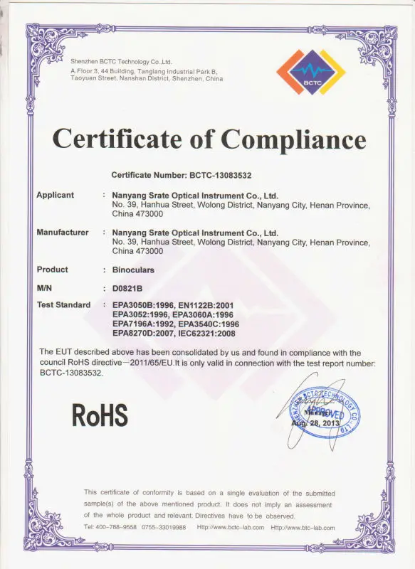 | Model Number: | D0821B binoculars; | Prism: | BK7, Roof prism; |
