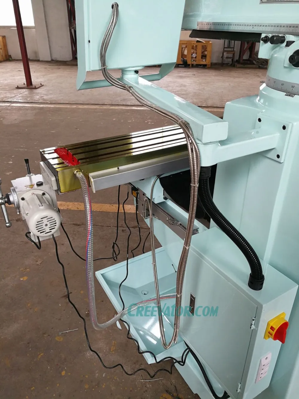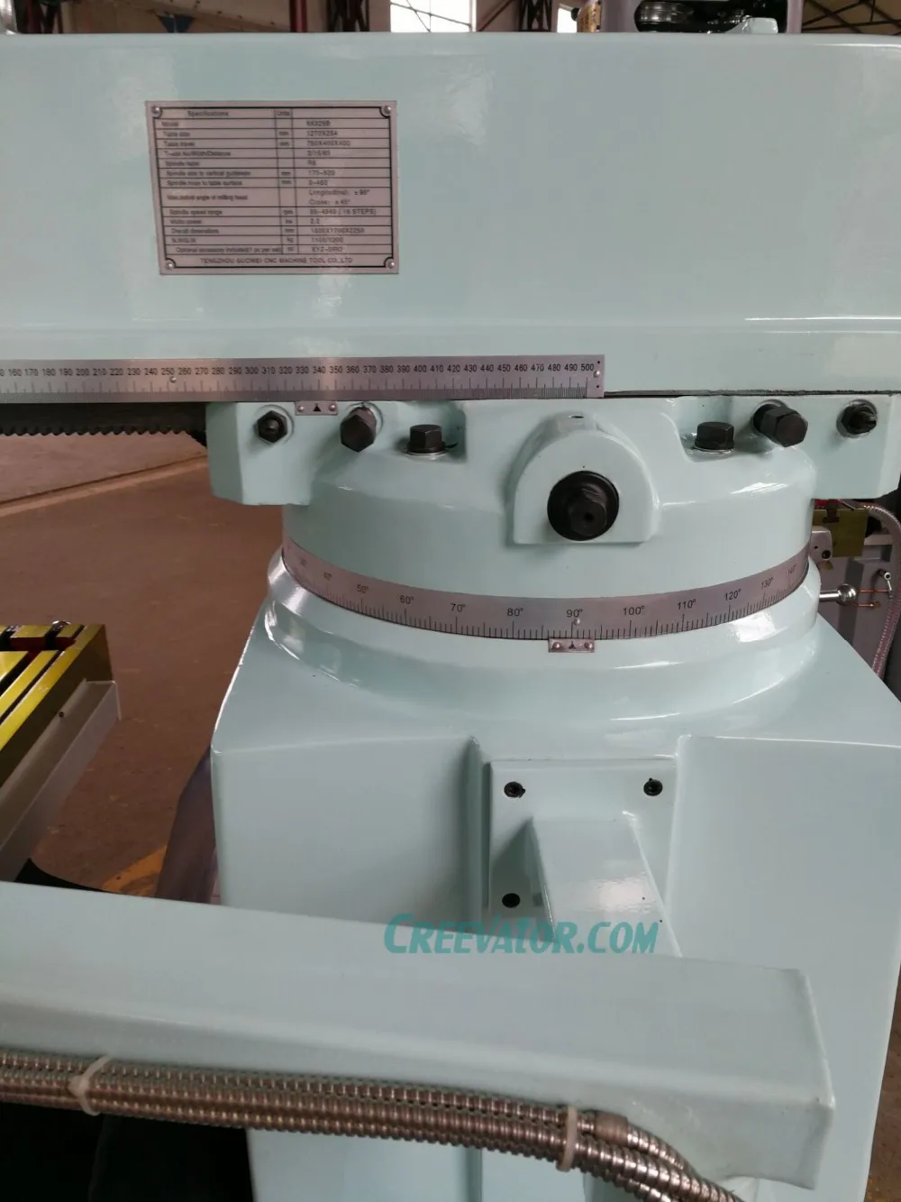The milling head can be vertically rotate +-45 degrees and 360 degrees horizontally.