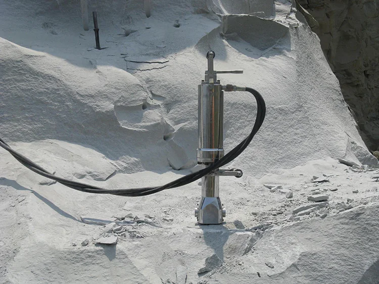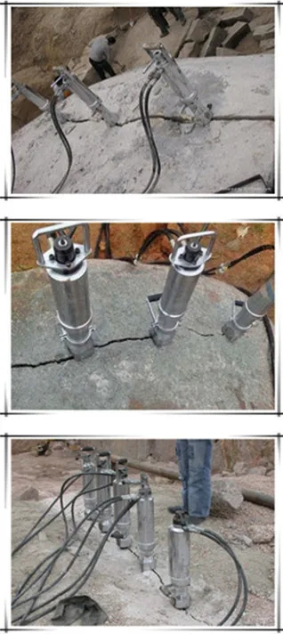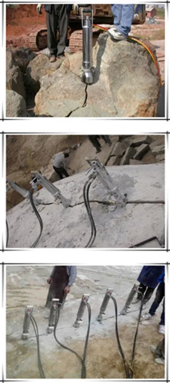 1.Hydraulic rock splitter is maninly composed of power pump pack and hydraulic cylinder . Mainly applicable to the secondary breaking . First drill hole in stone, then insert hydraulic cylinders which is contain wedge and feathers . Start engine to provide hydraulic pressure . Repeat the process until the whole structure is fractured into smaller sections and ready for removal.