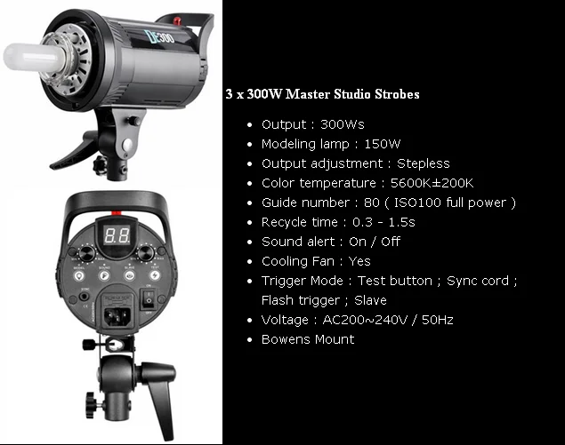 3 x 300w Strobe light (with 150w modeling lamp)