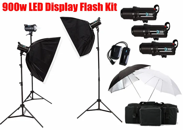 900W Flash Kit Digital LED Display Cooling Fan Photo Studio Strobe Light DE-300