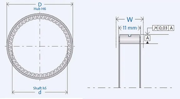 d = inner diameter D = outer diameter W = width T = torque n = rotation speed