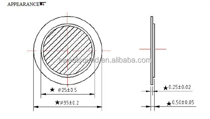 1. Size: Diameter 35mm, Thickness 0.5mm