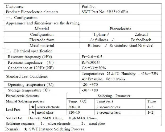 | Product name: | piezoelectric generator; | Model Number: | 3B35+2.6EA; |