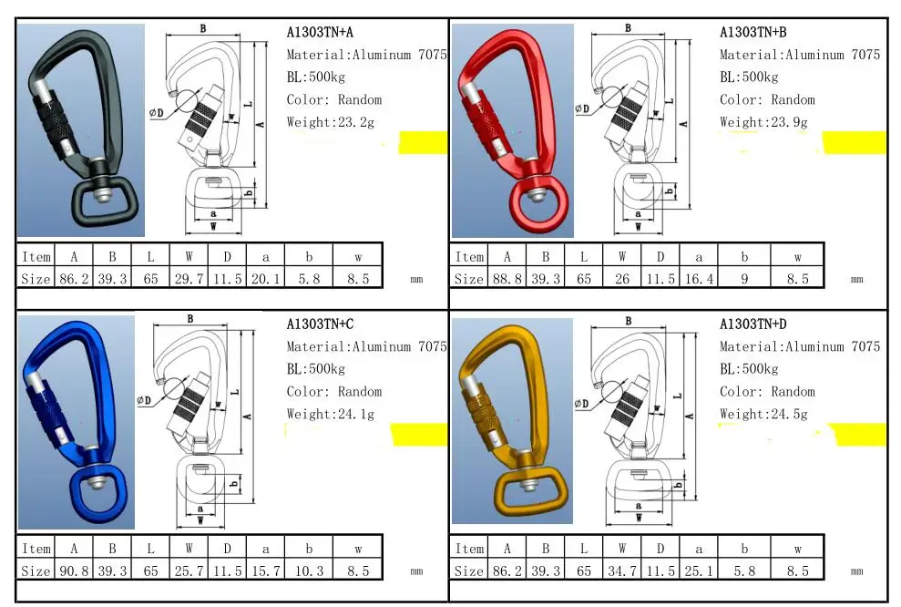 | Application: | Climbing dog leashes , keyring etc.,General Industry; | Model Number: | A1303TN+ABCD; |
