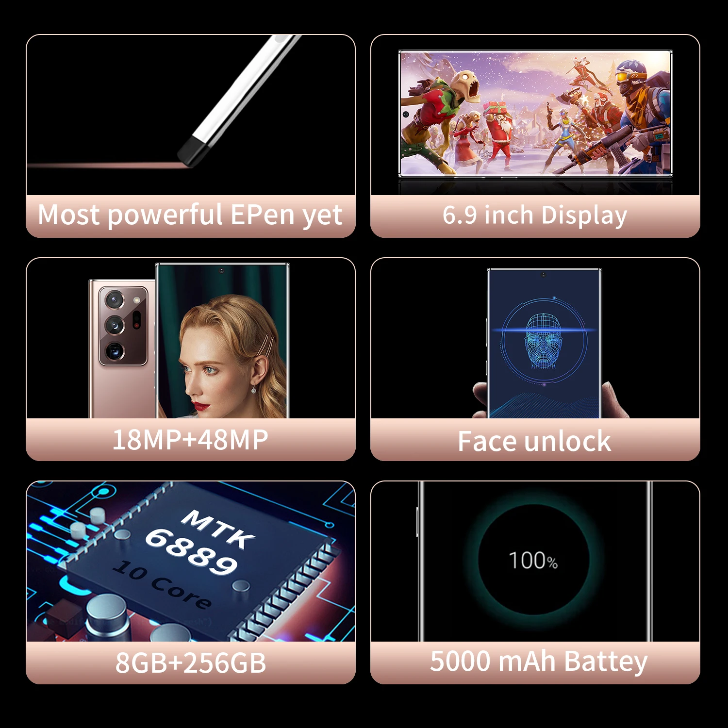 4.Vibration: Support 5.Colors: Black/Blue/White 6.Memory: 8GB RAM+256GB ROM