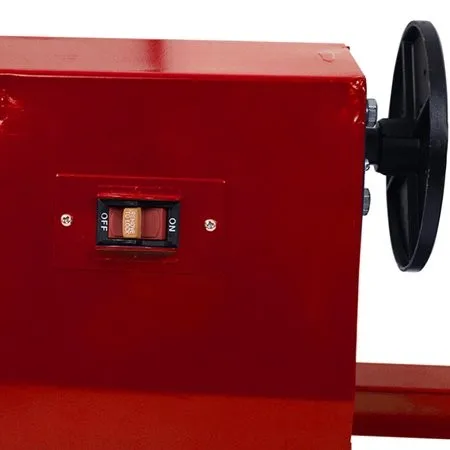 This lathe is a machine tool which spins a block of material (wood) to perform various operations such as cutting, sanding, knurling, drilling, or deformation with tools that are applied to the workpiece to create an object which has symmetry about an axis of rotation. Woodworking lathes are the oldest variety. An adjustable horizontal metal rail - the tool rest - between the material and the operator accommodates the positioning of shaping tools, which are usually hand-held. With wood, it is common practice to press and slide sandpaper against the still-spinning object after shaping to smooth the surface made with the metal shaping tools. This wood lathe is engineered and manufactured to the highest standard of quality. It performs between central turning and face-plate turning. It is especially suited to high speed sanding and polishing of finished work.
