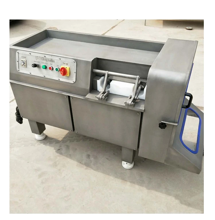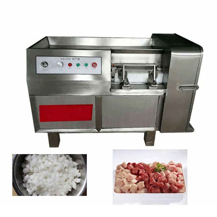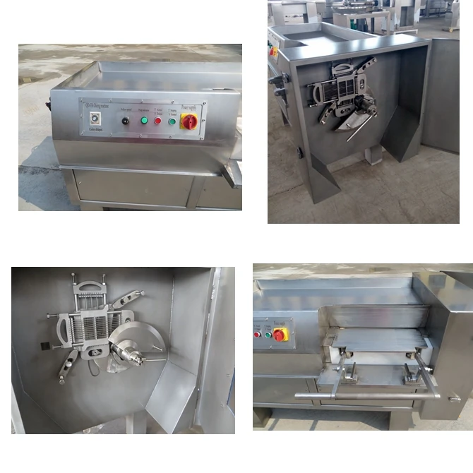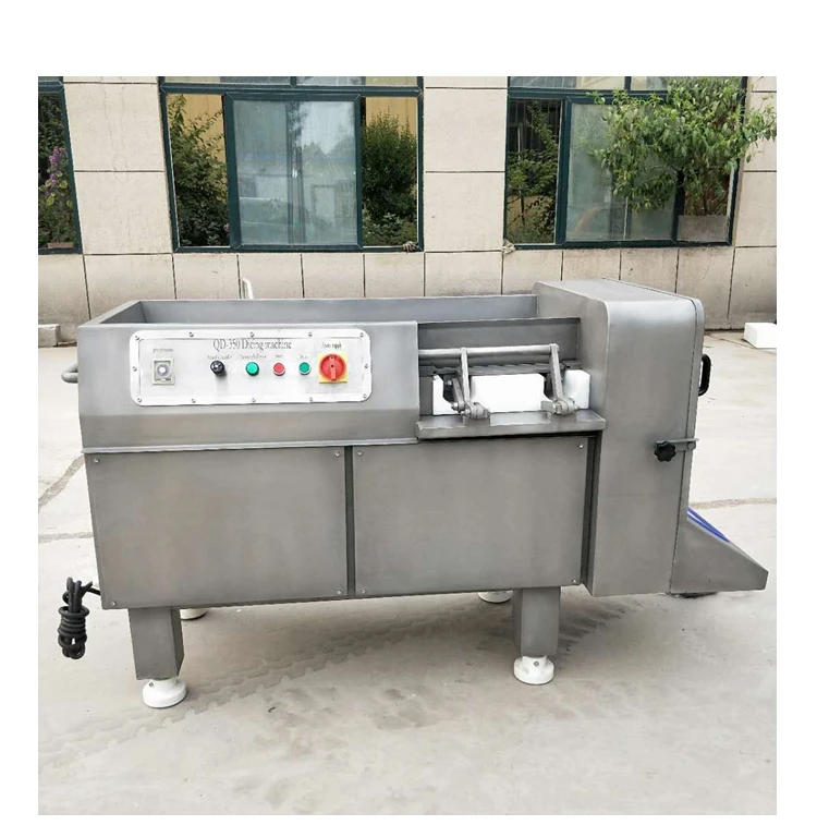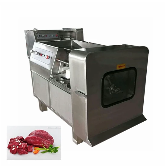Frozen meat cube cutting machine can cut chicken, beef, pork meat into cube. Suitable for meat factory, restaurants, supermarkets, meat market processing, food processing plants etc
