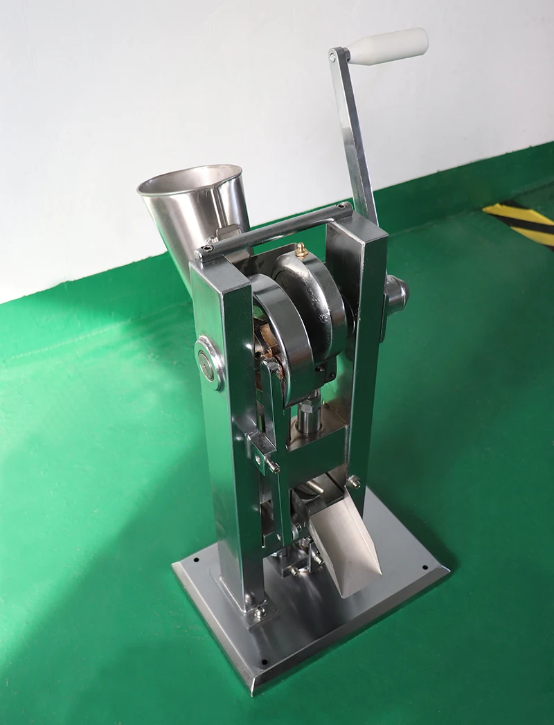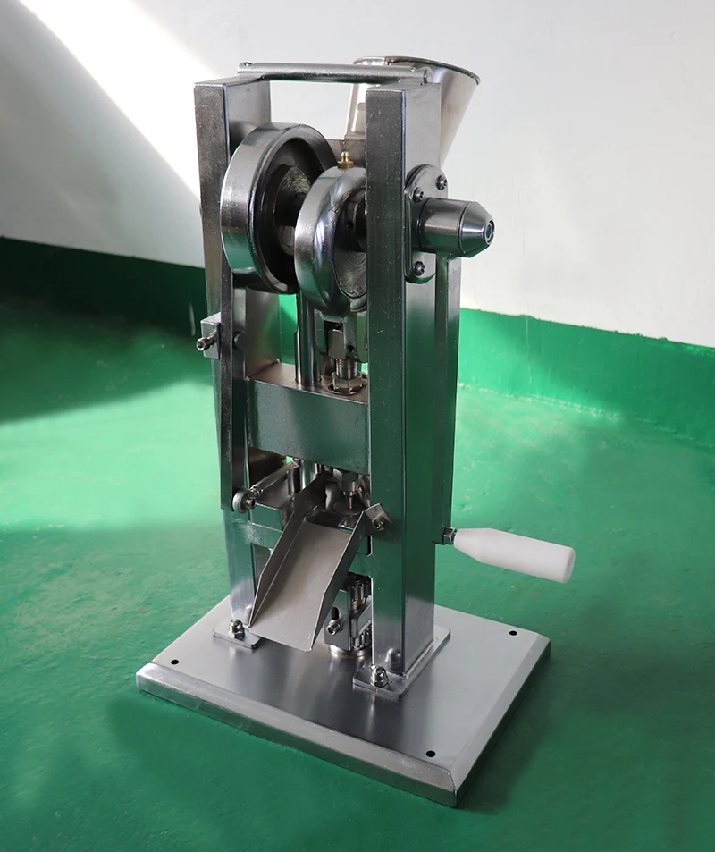 This machine can press kinds of granulate material into round and other shapes of tablet, and it is suitable for laboratory and small scale producing.