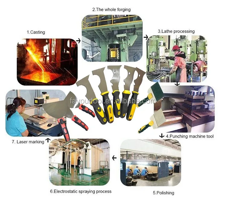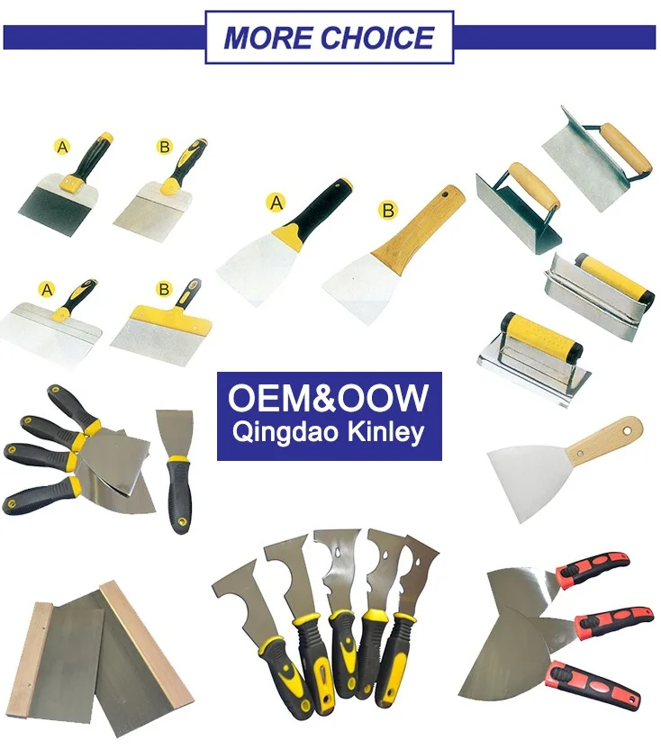 The plastic + rubber (PP+TPR) handle is holding comfortable; Our putty knife is widely used in the construction and daily life. |
