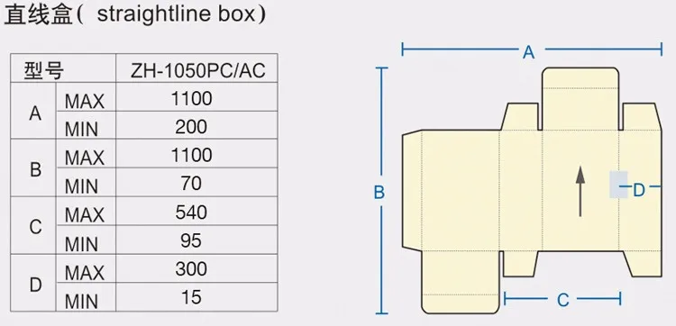 ZH-1050AC is a multi function model,suitable for card board,EB flute corrugated board,can do two fold,four fold,and bottom lock.This model has correction device and bottom lock device.Can make electrical adjusting.Has UV destroying device and dust remove device for better gluing effect.