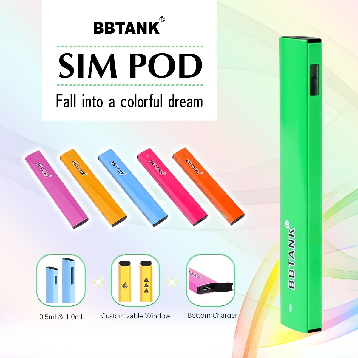 BBTANK custom pods cbd vape cartridge high quality OEM color empty thick oil pod buttonless BBTANK Sim pod
