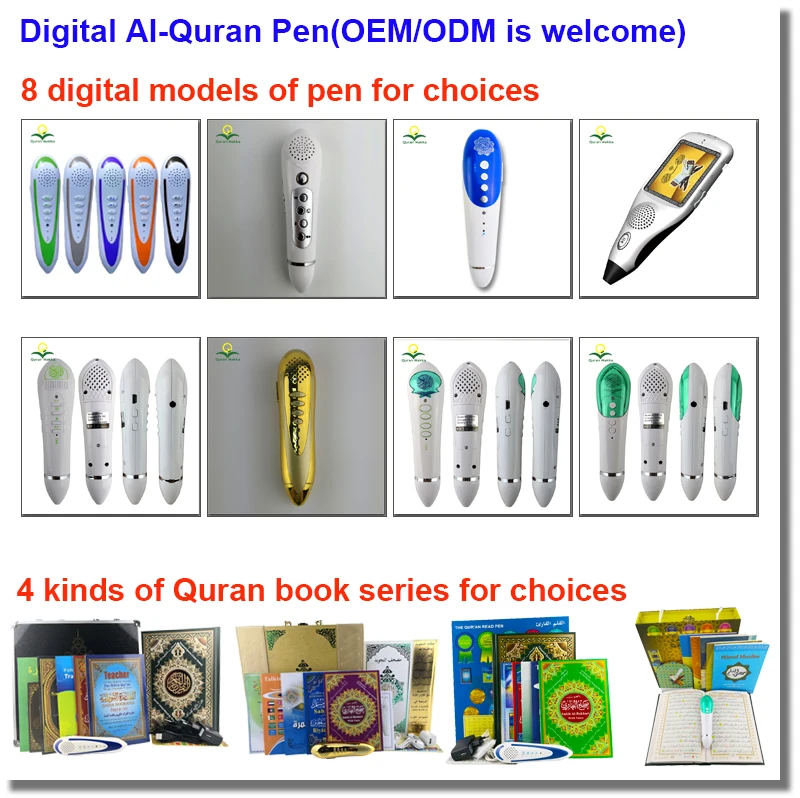 This pen is the popular model in the market, we have books for M9, M10, PQ15 series, it is the cheapest pen in market with good quality. It supports Quran books, Qaida Noorania, Sahih Muslim, Sahih Al-Bukhari, Hajj&Umrah, Travel Dictionary and some other Islamic books. The 8900S series are sold with Small Size Quran books(13.7*19.5cm), for details please check the following introduction. OEM/ODM is welcome.