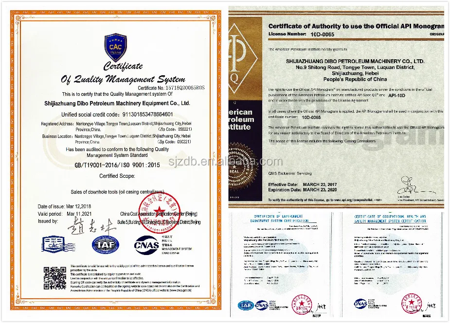We have passed API 10D, ISO9001 International Quality System,GB/T24001 Environment Management System & GB/T28001 Occupational Healthy Safety Management