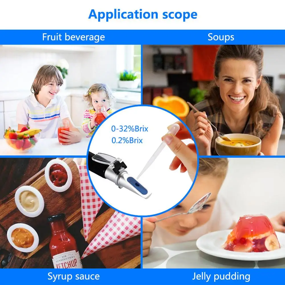 | Brix Range: | 0-32%; | Min. Div.: | 0.2%; |