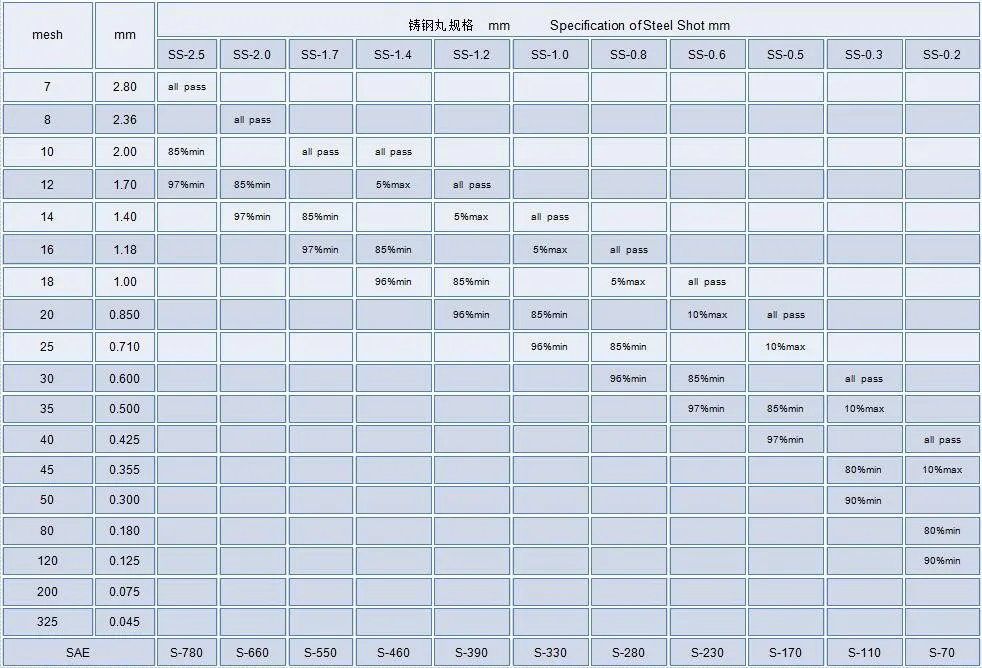 High-grade steel shot with high density and less deficiency, the range of the grain size narrow. Special heat-treatment provides fine microstructure and optimum mechanical characteristics, which gives products the appropriate resilience and good fatigue resistance, and high cycling application rate and less consumption, this can increase the productivity and the profitability of your equipment. Our quality is up to the SAE J444, J827 standard.