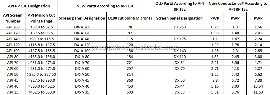 GP provides all the API series screens from API 20 to API 400. GP shake screens strictly conform to the API standard, all of these API replacement shaker screens can be used to replace various shakers, such as Mi-Swaco, Derrick, NOV Brant, etc.