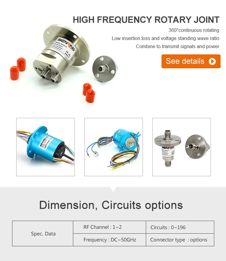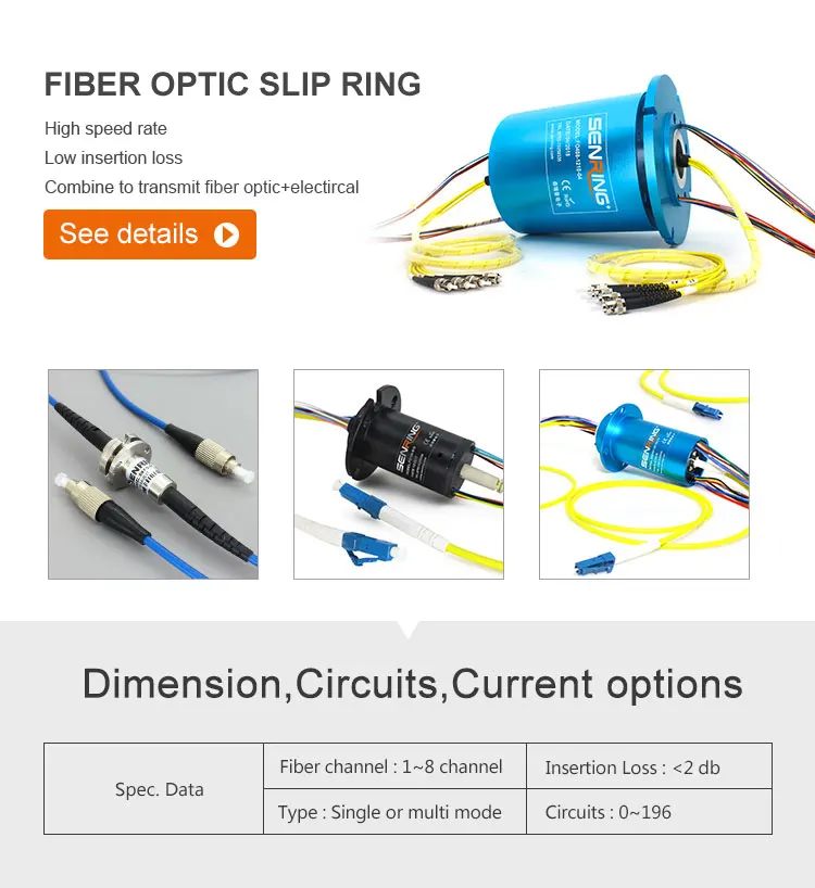Senring slip ring/Rotary union applied to any devices where require to transmit power and signals when rotating. hole size from 3mm to 300mm, circuits from 2 wires to 300 wires.