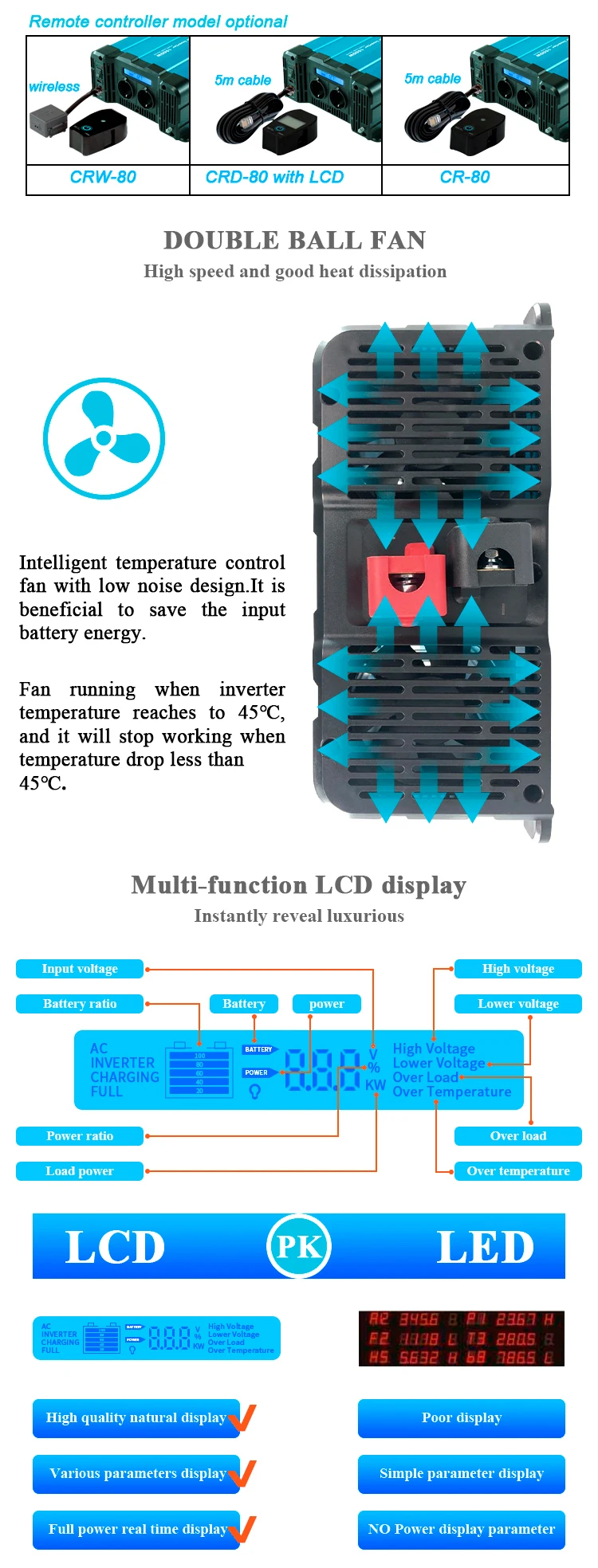 | LCD display | voltage, power, protection status(optional) | ||||||