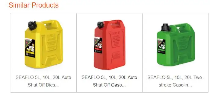 | Video outgoing-inspection: | Provided; | Product name: | SEAFLO 5L, 10L, 20L Auto Shut Off Gasoline Cans; |