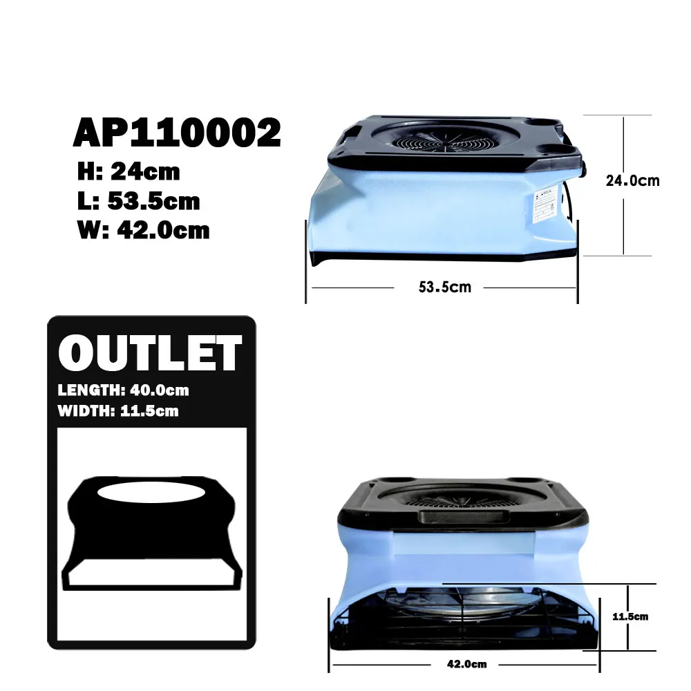| AP110002 | 180W 230V/50Hz | 0.75m² | TWO | 900cfm | 1370rpm | 54.5*43*25cm |