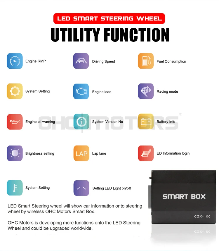 LED CARBON FIBER STEERING WHEEL OHC MOTORS