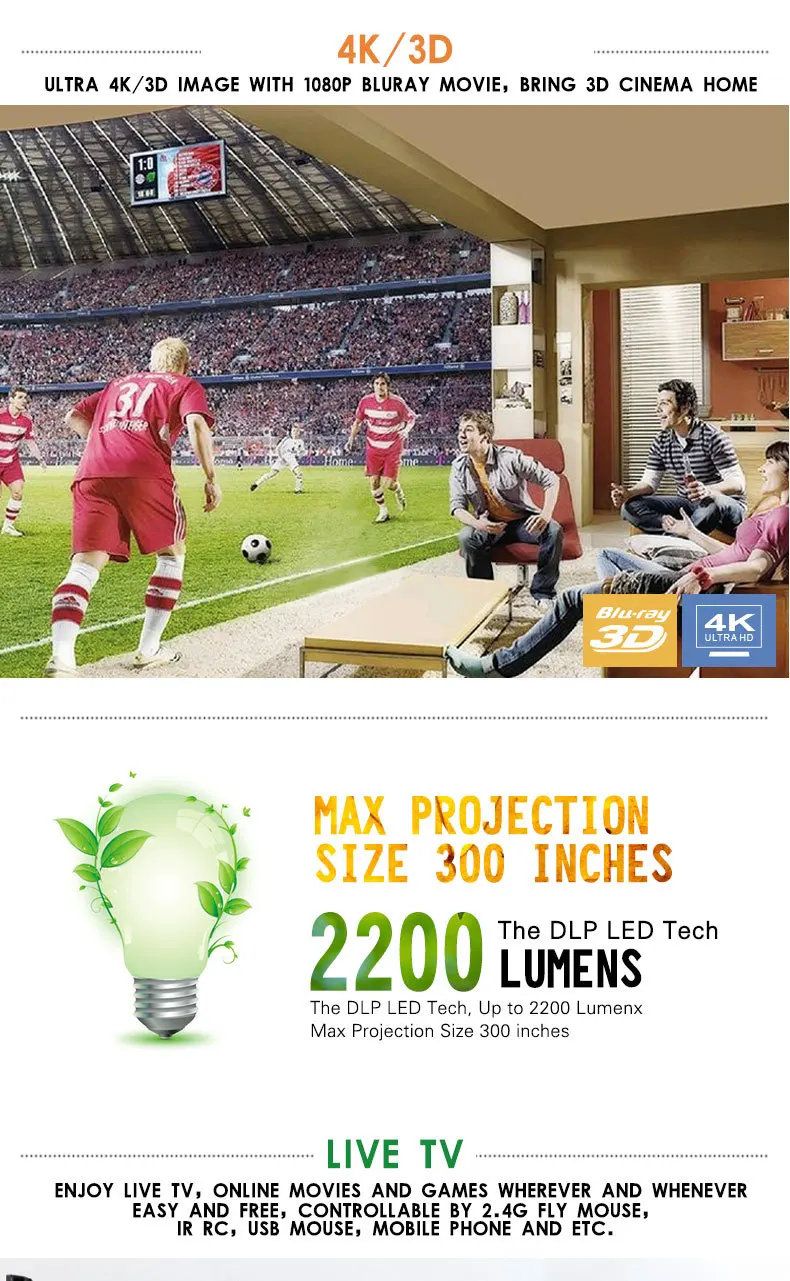 | Product Description: | Home Theatre Projector; | Lens: | Manual focus; |