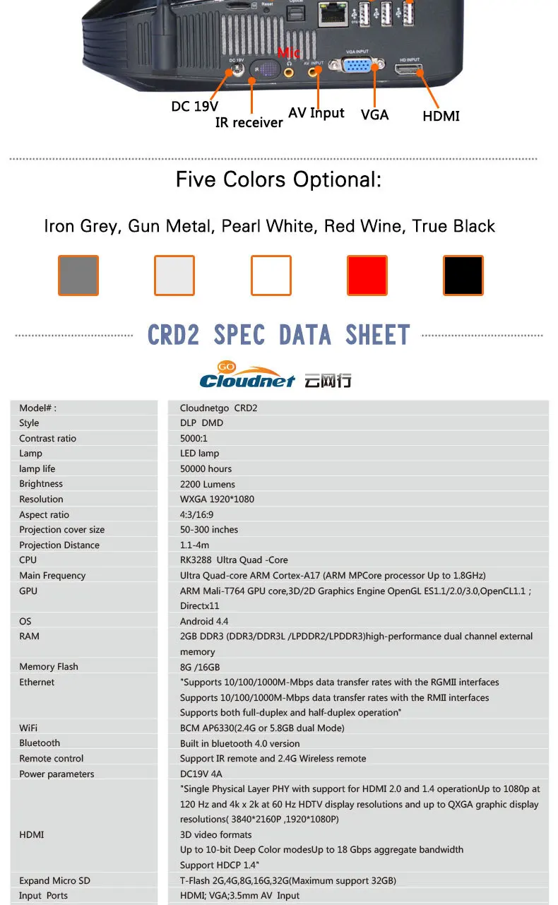 | Resolution: | WXGA 1280*800; | Model Number: | CRD2; |