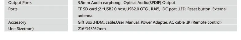 | Packaging Detail: | Standard export quality carton QTY/CTN: 1pcs NW: 2.0KG GW: 3.0KG Accessories: HDMI cable, USB cable, User Manual, Power Adapter, IR RC, USB power cable; | Payment Terms: | L/C,T/T,Western Union,Paypal; |