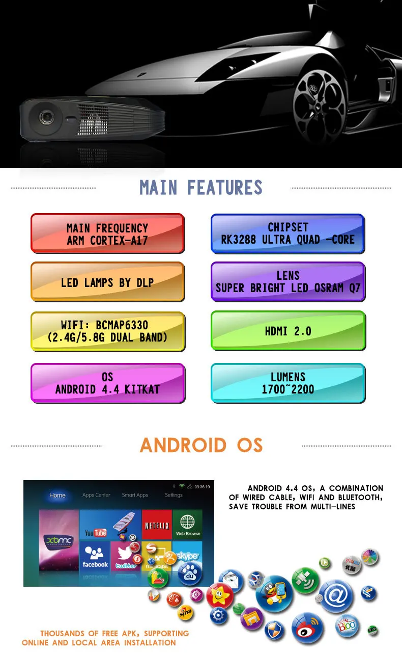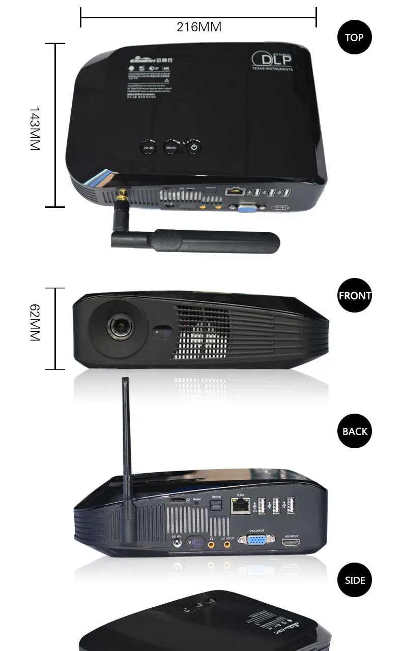 Professional Home cinema Android OS 2G/16G Full HD 1080p DLP 5000 ansi lumens 3D Led Blu Ray short throw projector