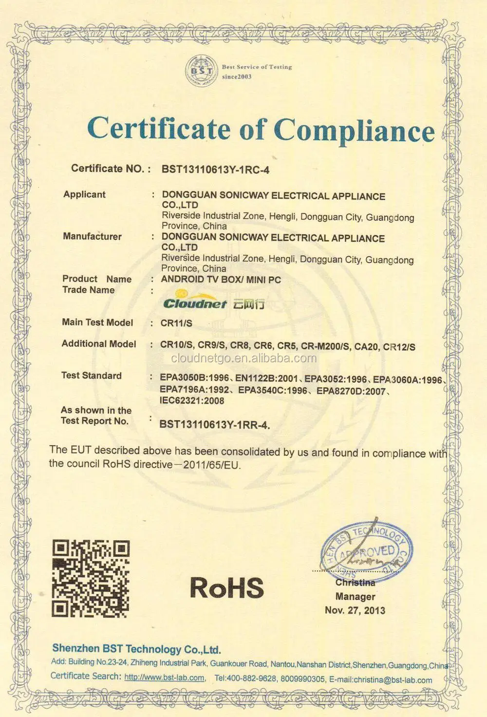 Cloudnetgo is the registered brand of Dongguan Sonicway Electric Appliance Co Ltd, a well equipped manufacturer with