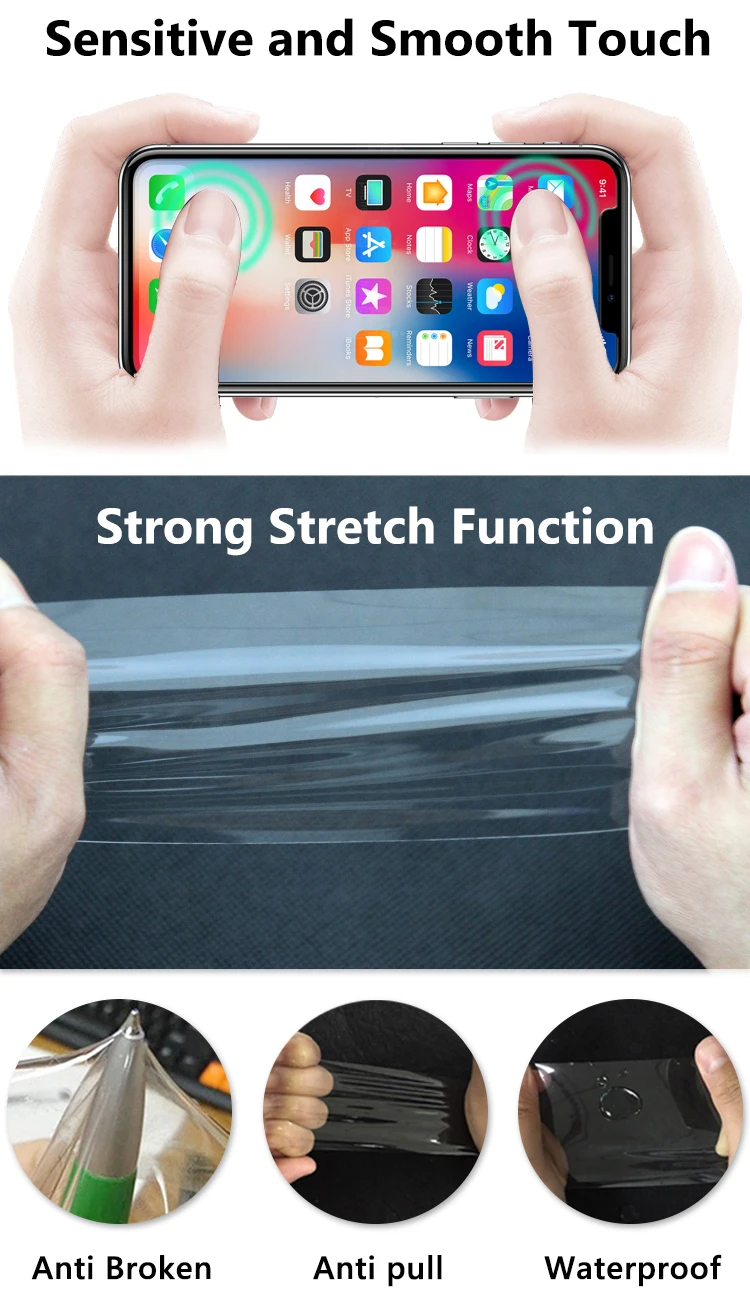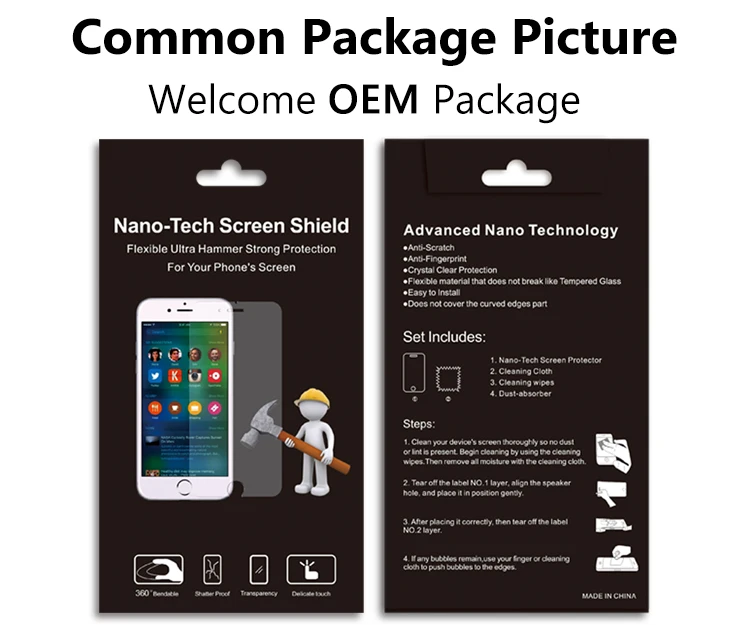 | Package: | Nano anti shock screen protector; | Raw Material: | Made in USA; |