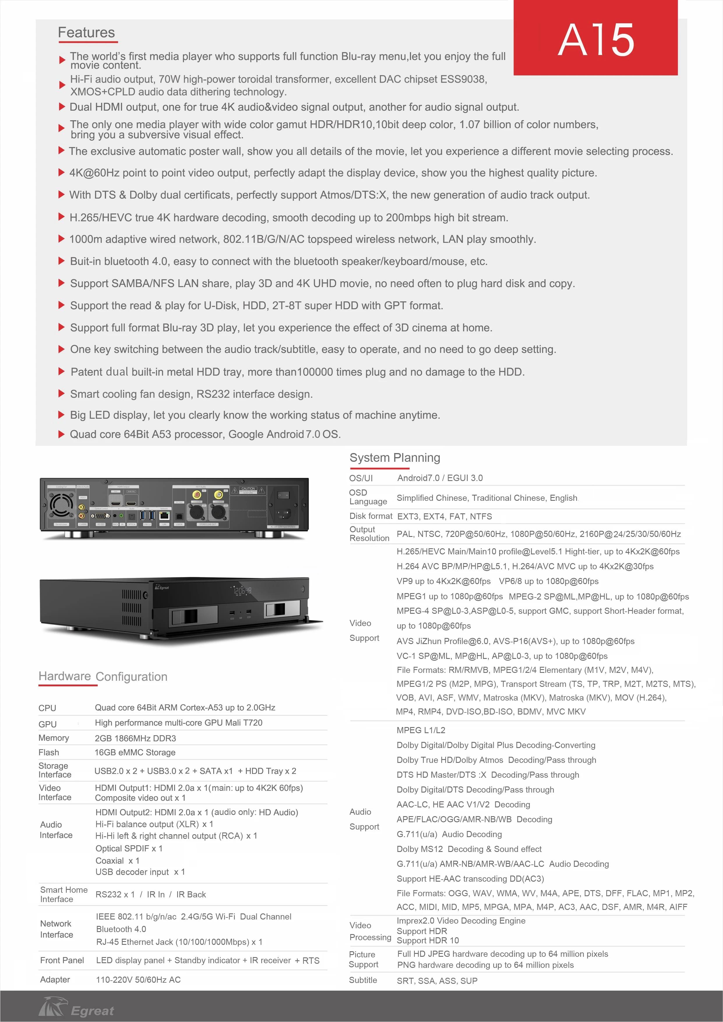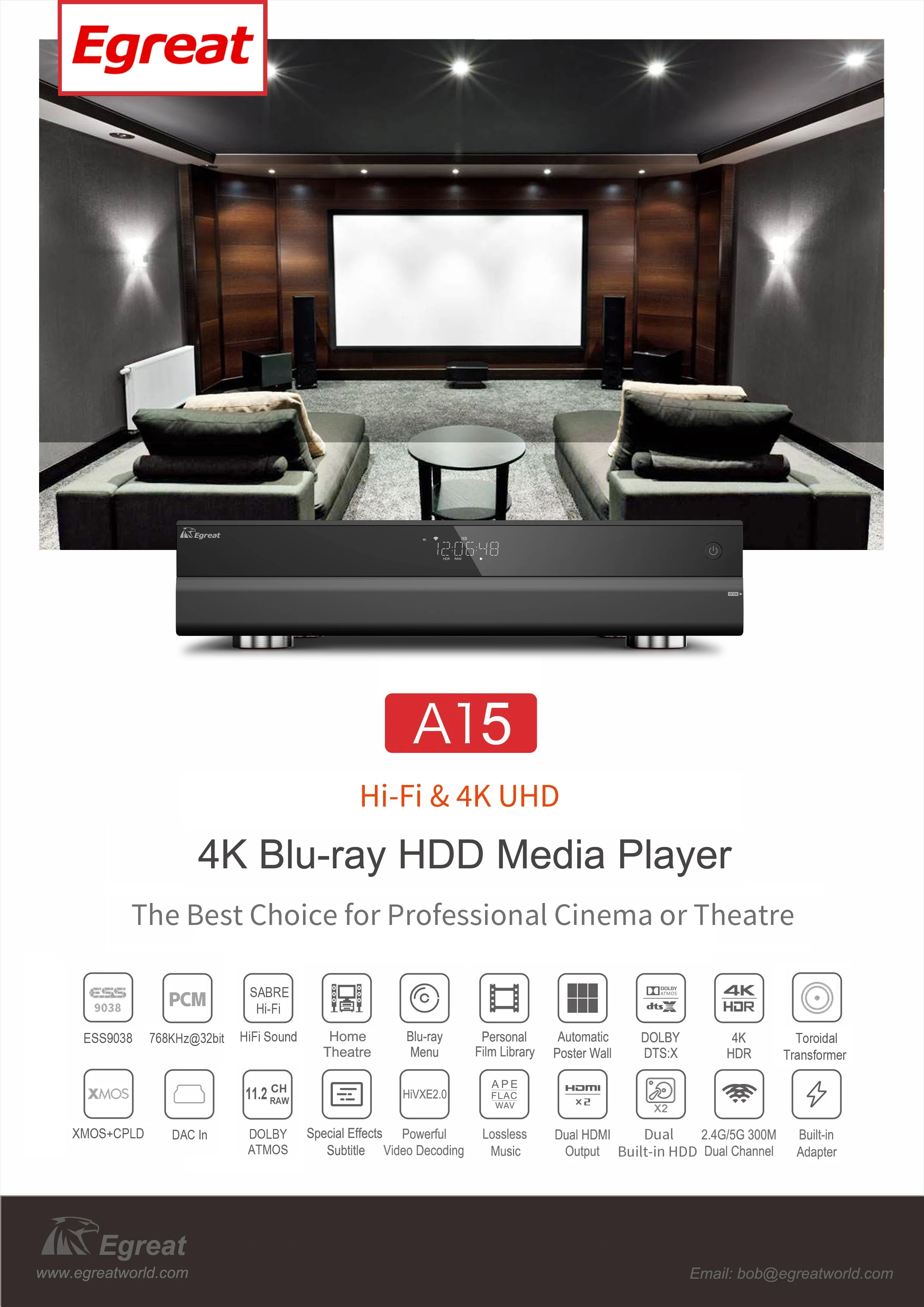 2020 New arrival of high end HIFI 4K UHD Blu-ray HDD media player Egreat A15