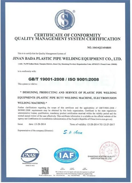 Jinan Bada Plastic Pipe Welding Equipment Co.,Ltd is a professional manufacturer specialized in producing and selling BADA brand plastic pipe and pipe fitting welding machine,automatic butt fusion welding machine, pipe fitting welding machine, saddle-shaped taper pipe butt fusion welding machine, plastic pipe multi-angle cutting saw, electrofusion welding machine, portable socket welder, and other pipe auxiliary building machines.