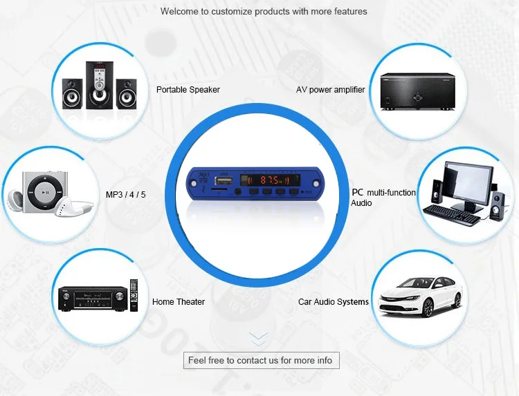 Our production range:speaker module,mp3 decoding module,mini card speakers MP3 circuit board PCBA,no disc on-board machine such as circuit board,harware,SMT,plug-in,assembly,testing,packing,delivery through-train service.