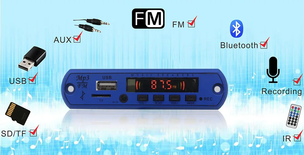 mp3 usb fm card usb bluetooth module