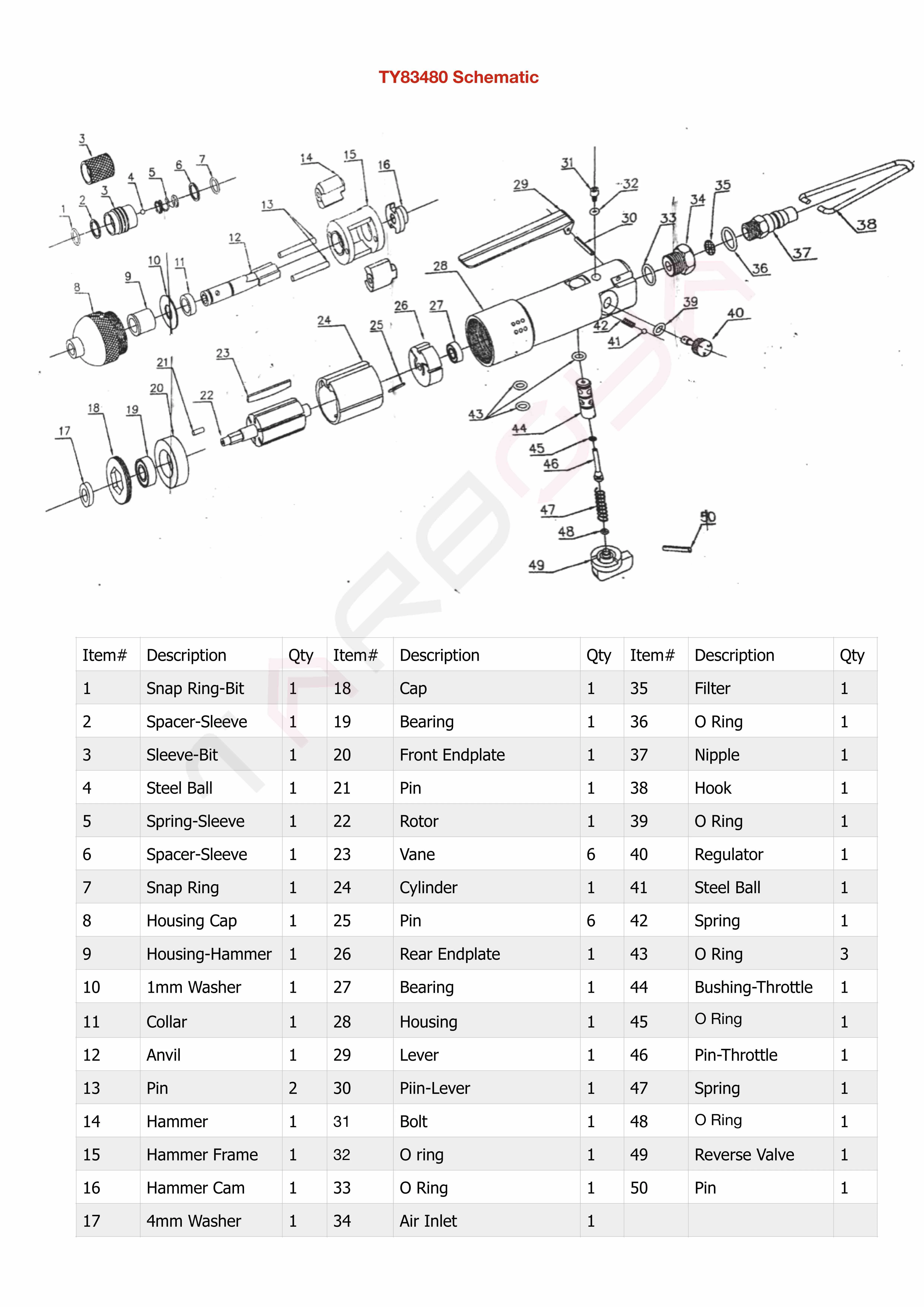 | Packaging Detail: | Scope of Delivery 1* TY83480 1* Bit 1* Hook 1* Nipple 1* Extension Bar 1* Technical Passport (#9940122); | Air hose: | 3/8"; |