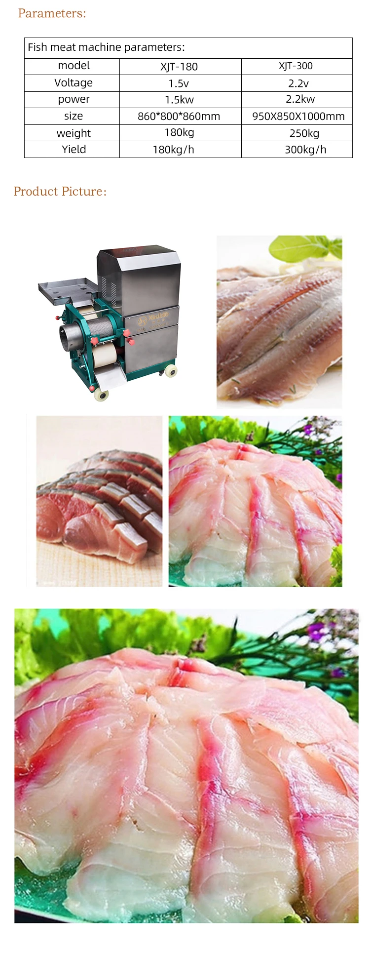 Fish picker is used for all kinds of fresh water, sea water fish, shrimp dermabrasion and meat removal machinery. It is suitable for many specialized fish and shrimp products factories, food factories, fish ball production, fishing boats and other units. The fish machine is equipped with a meat barrel and a rubber belt for crushing meat. The fish is squeezed into the meat barrel by the mutual squeezing motion of rolling meat barrel and rotating rubber belt. The fish skin and bones are left outside the meat barrel and sent out by the scraper. |