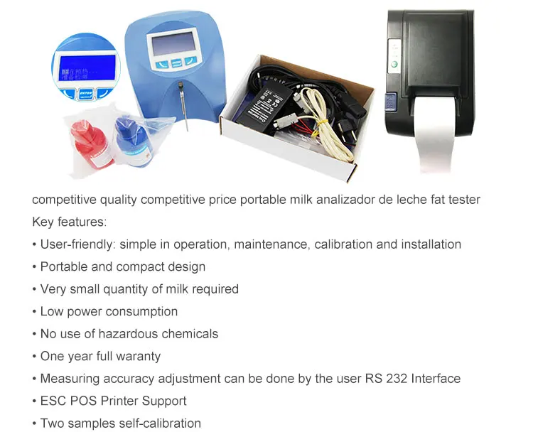 | Packaging Detail: | Portable Cow Sheep Uht Goat Buffalo Cream Whey Recovered Ultrasonic Analizador Price Equipment Fat Testing Machine Milk Analyzer package information of milk fat testing machine: 1pc/box; |