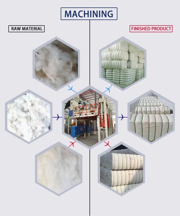 | Raw material: | textile waste; | Size of machine: | 6500x2000x4800mm; |