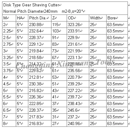 1), standard disk type shaving cutter with m2-m8,PA20, helix angle:15degree