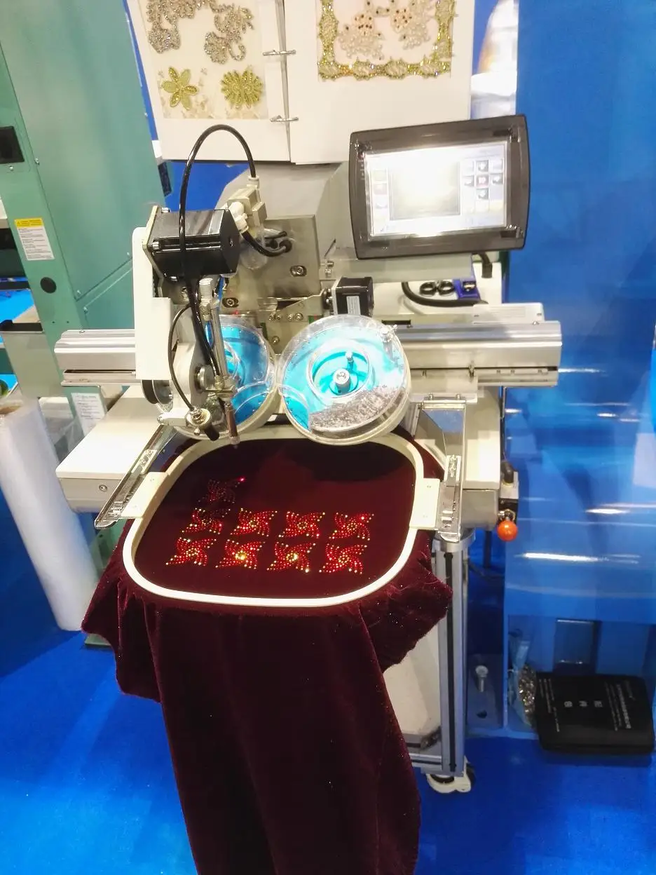 This rhinestone setting machine can be used for women clothes, underwear, children wear, T-shirt, embroidery patterns, belts, handbags, gloves, scarves, hats etc.