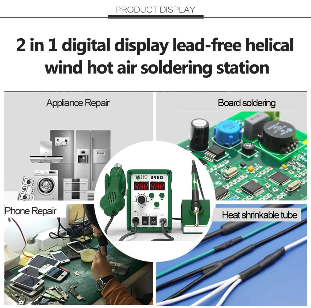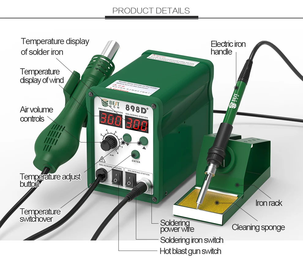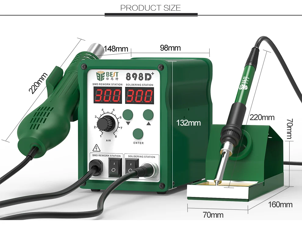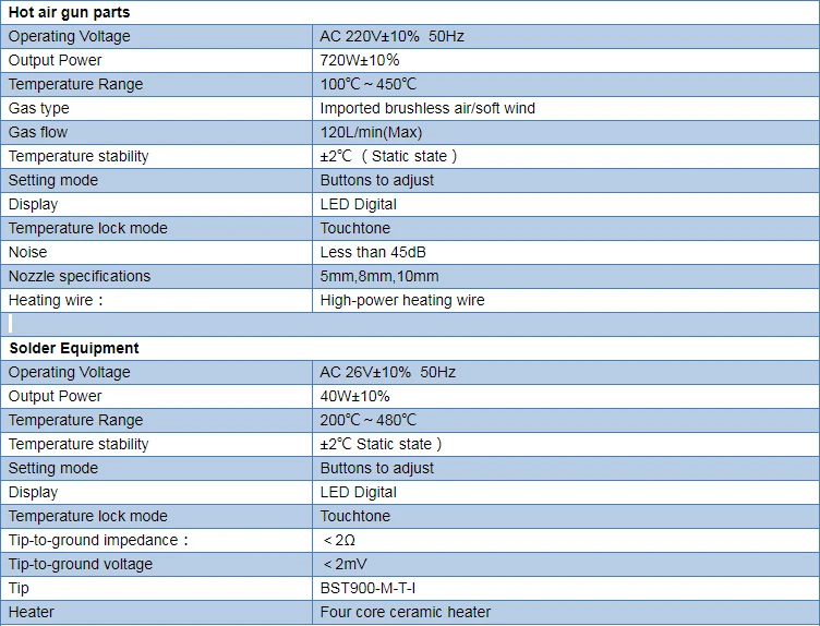 | Heater: | ceramic heater; | Type: | SMD rework station,Digital; |