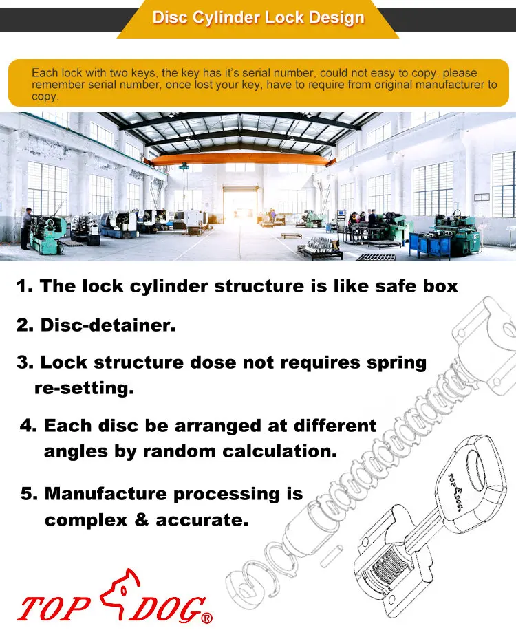 1. The lock core cylinder is the world's most recognized anti-theft level, stainless steel disck cylinder lock core, is not common lock cylinder on the market.
