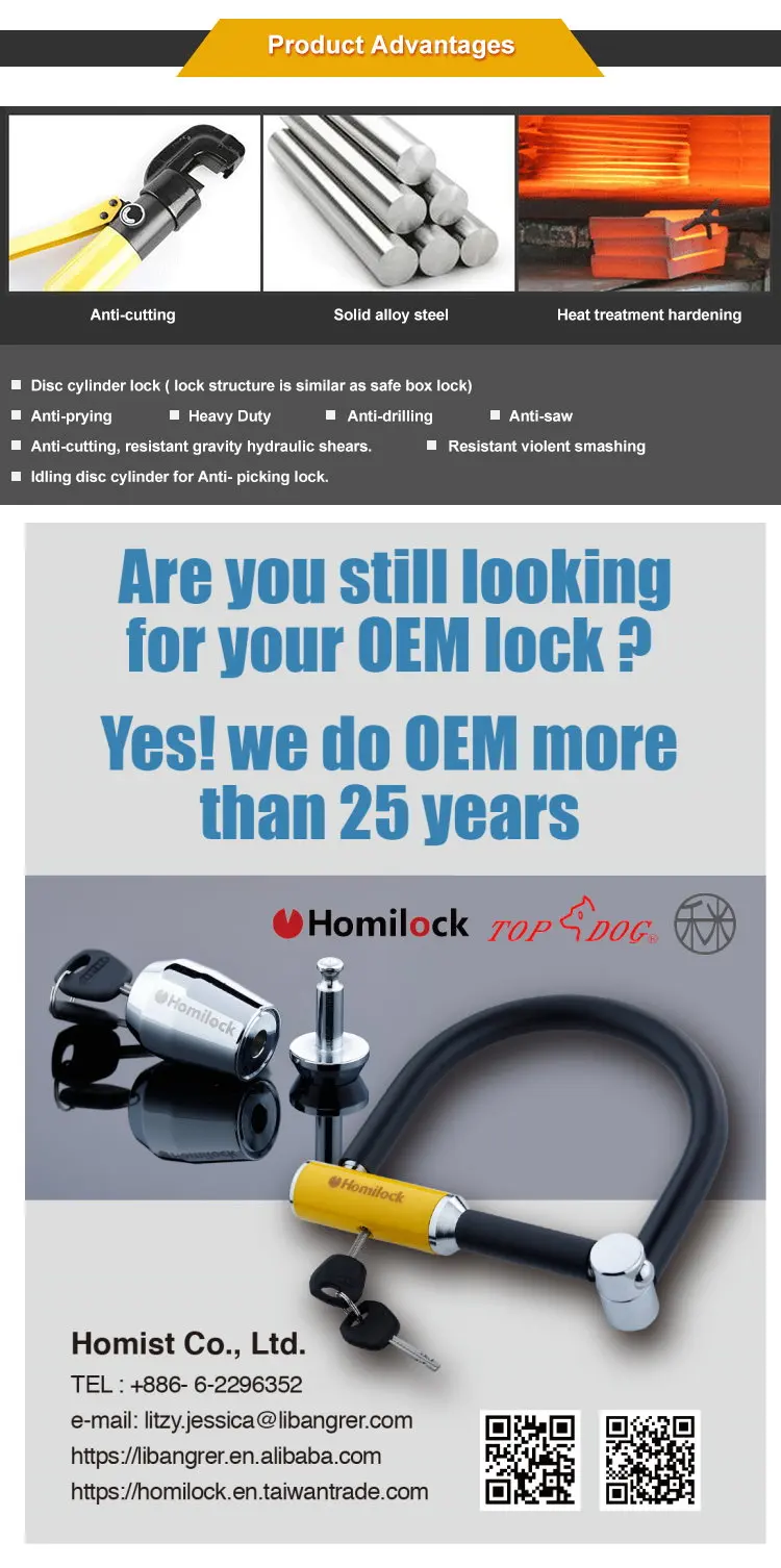 180 extending detainer cylinder U lock for bike